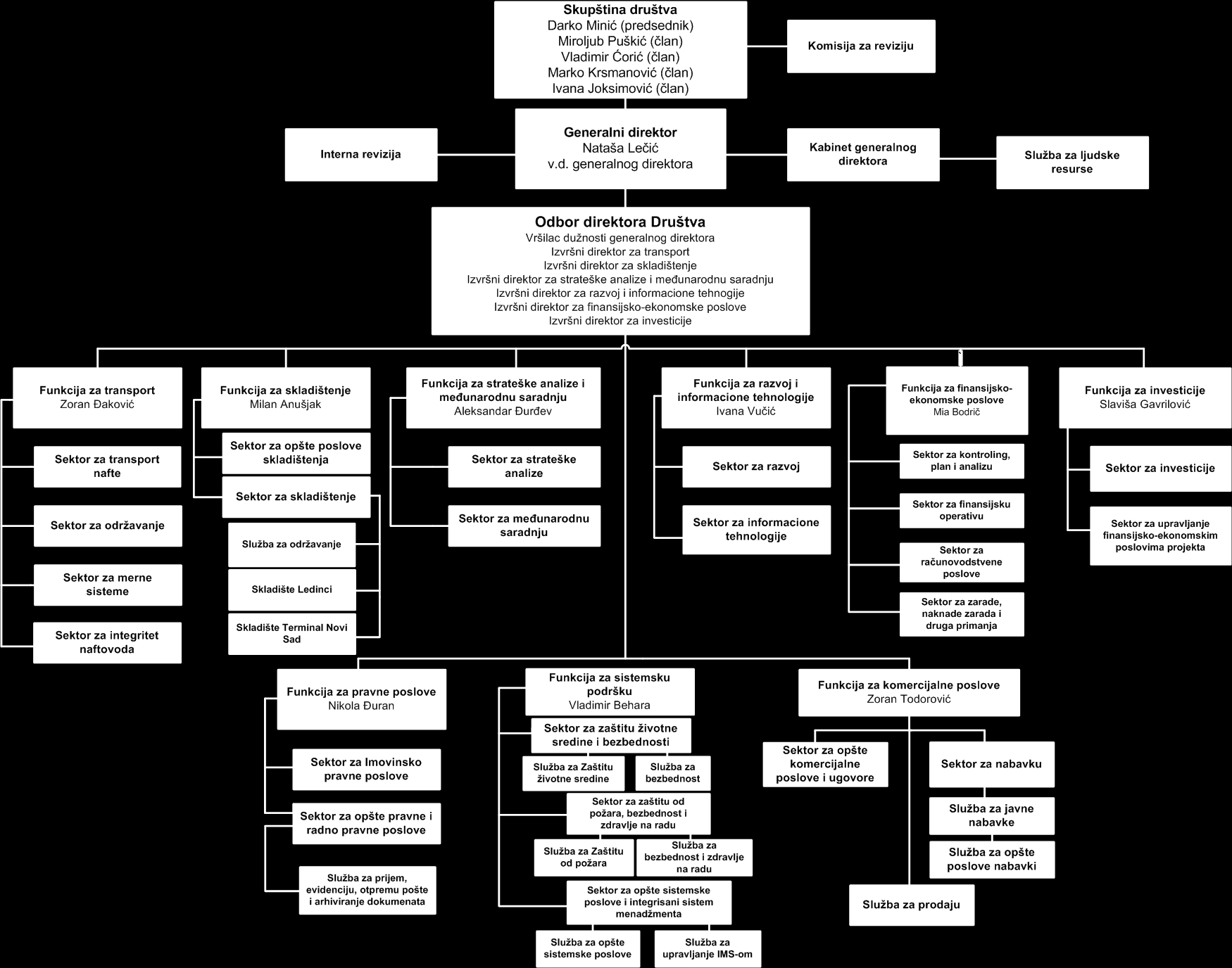 Upravljanje TRANSNAFTA AD Pančevo organizovano je kao jednodomno, a organi upravljanja ovog privrednog društva su Skupština i Odbor direktora sa Generalnim direktorom.